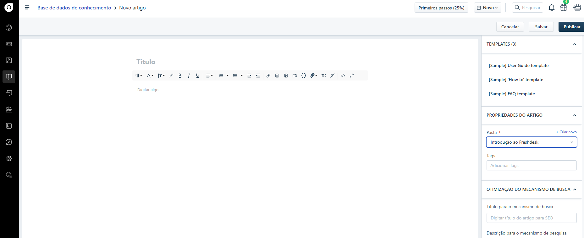 - O Freshdesk também permite que você personalize suas meta informações. Dessa forma, você pode otimizar sua base de conhecimento para os mecanismos de pesquisa e garantir que eles sejam classificados melhor no Google. Mais informações sobre como otimizar os artigos de sua solução para os mecanismos de pesquisa estão disponíveis aqui .