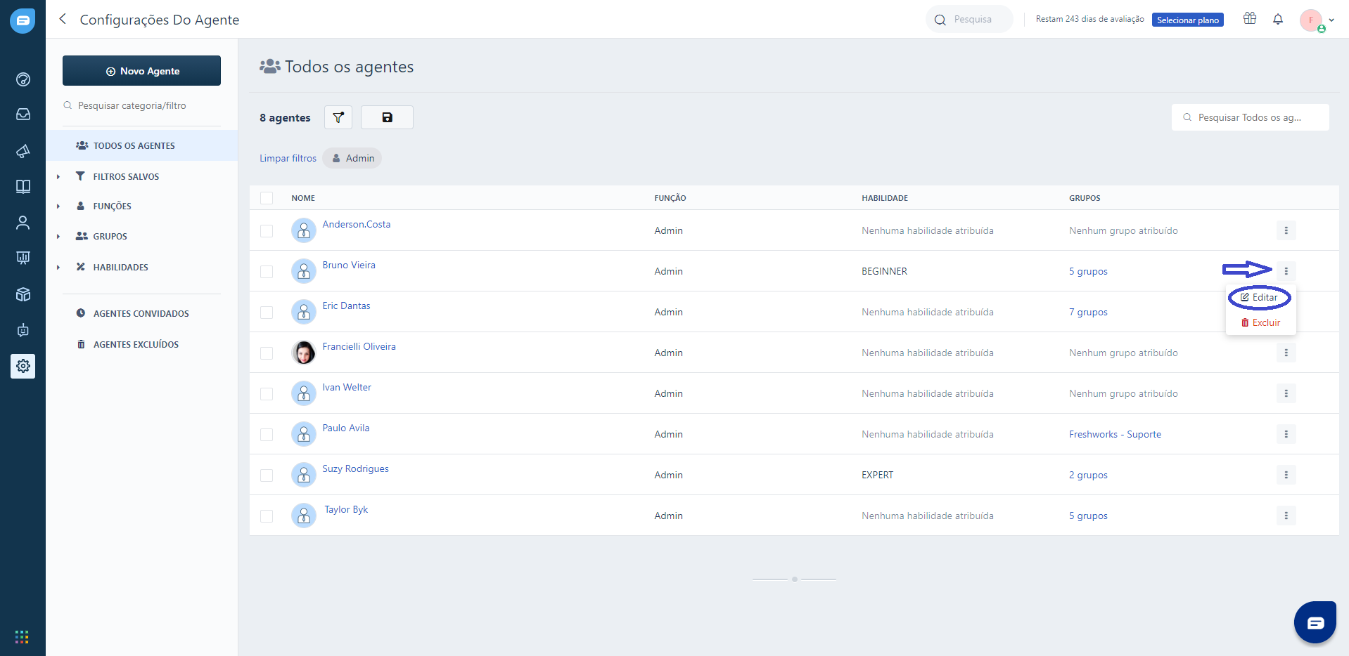 O Administrador / Proprietário da Conta pode fazer tudo no Freshchat.