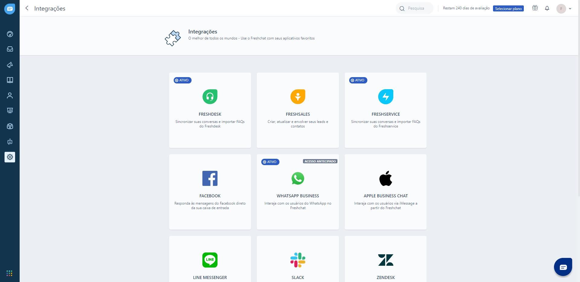 - Apoiamos imagens e vídeos a serem enviados do Freshchat